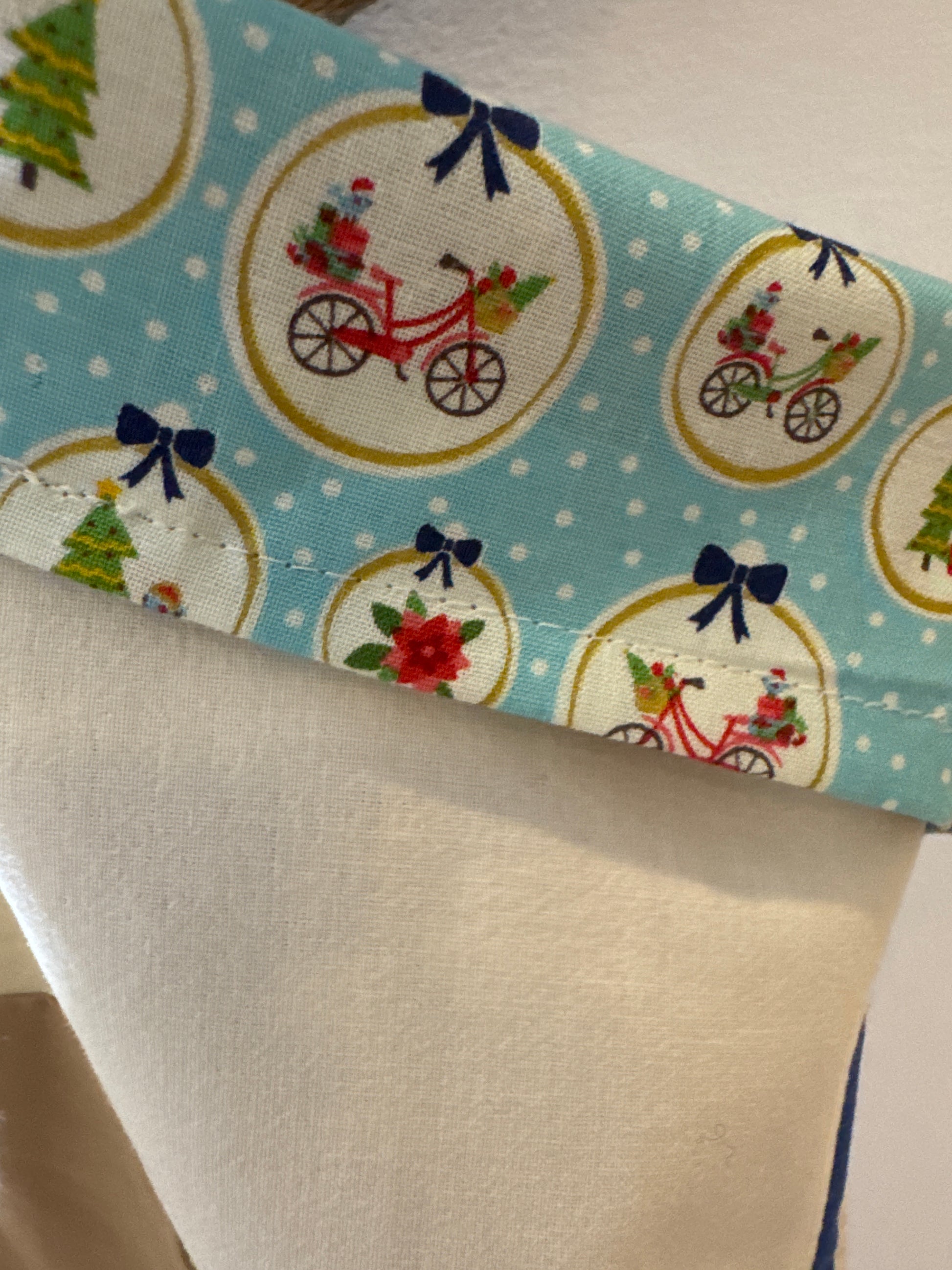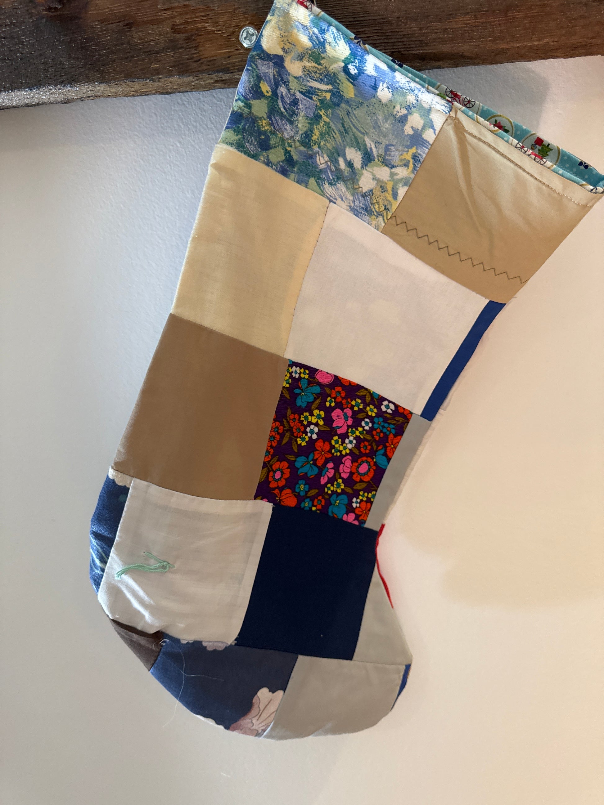 The Merry Mash Up Stocking is lovingly crafted from a delightful patchwork of vintage fabrics. This isn't just a stocking—it's a one-of-a-kind treasure bursting with character and retro charm.