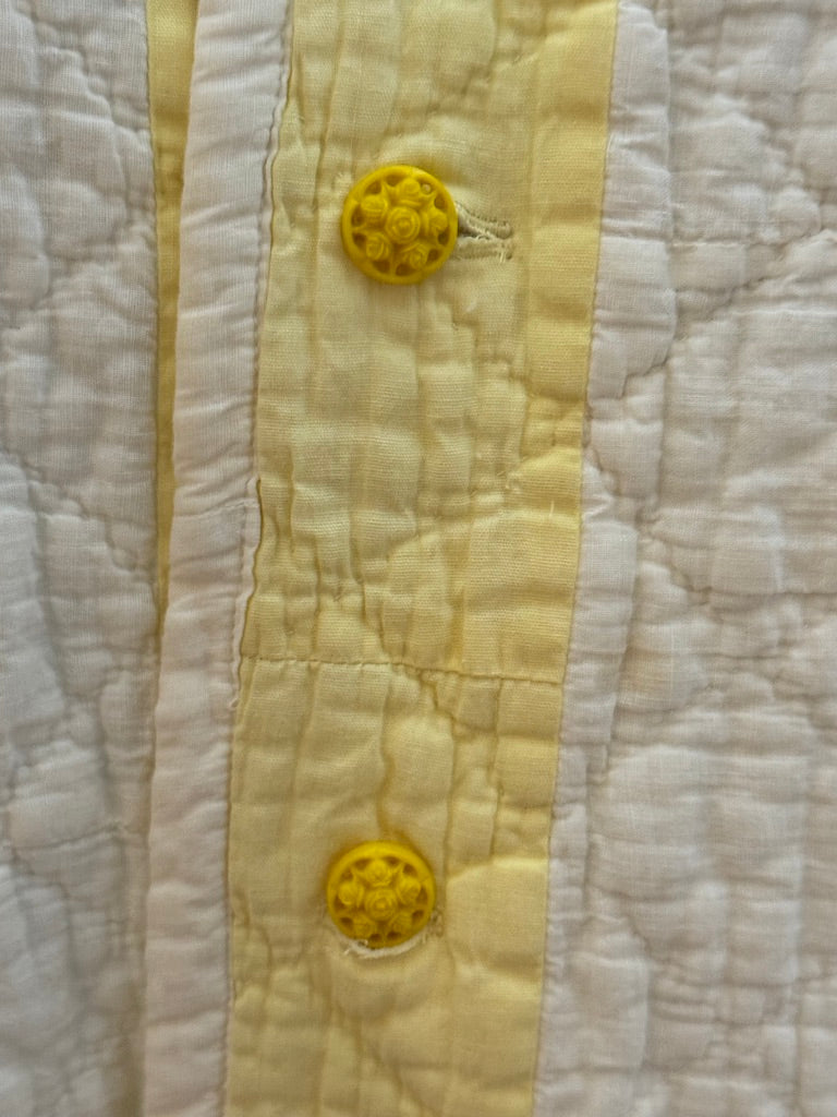 The Sunburst Sawtooth Quilt Coat is basically the human equivalent of walking into a room and making everyone smile. Made from a vintage quilt glowing in shades of golden yellow, this coat buttons up pure joy.